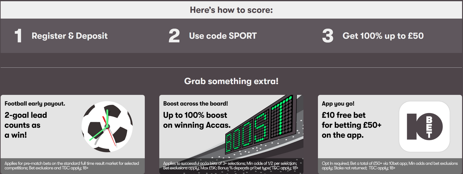 New to 10Bet? You’re in for a treat with their current welcome bonus for UK players: a 100% deposit match up to £50. This means if you deposit £50, you’ll get an extra £50 in bonus funds to kickstart your betting journey. Here’s how to claim it: