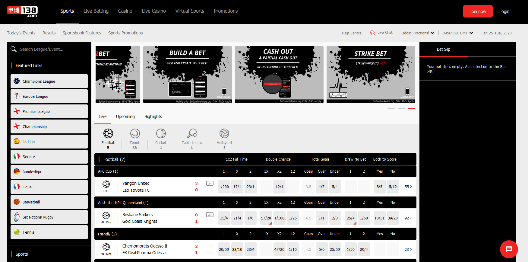 138.com offers a vast number of sports to bet. Of course, the most popular sport is football, but players can also try to win on badminton, boxing, and cricket. The partnership of the bookmaker with English football teams means this is one of the best places to bet on Premiership matches. The sportsbook of 138 Bet is a great experience and any player who tried it returned to the bookie. The website also offers live betting. Do you prefer to bet on dynamically changing odds, with a full array of information before your eyes, ready for analysis? Then this type of sports betting is exactly for you.