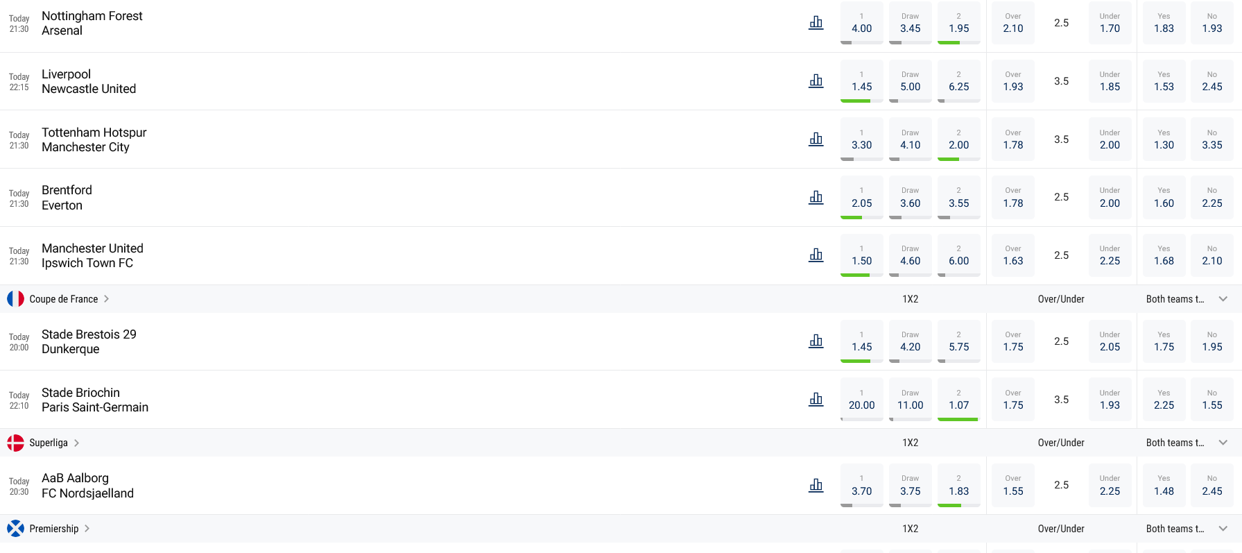 Sports and Events: Extensive coverage of leagues like the English Premier League, ATP Tour, and Grand National, with in-play betting for live events.