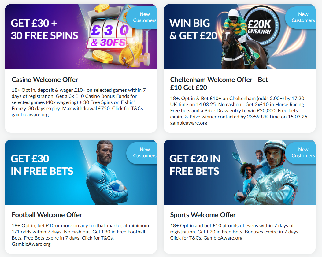 - Free Bets: Regular free bet offers pop up, often tied to major events like the Premier League or Cheltenham Festival. For example, betting £5 on selected markets might earn you a £5 free bet, giving you a risk-free shot at winnings.