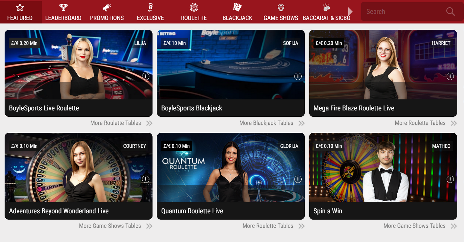 BoyleSports casino section is robust, featuring approximately 340 slot games, 17 table games, and a dynamic live dealer experience. Slots range from classic titles to modern video slots like Mega Moolah and Starburst, powered by top developers such as Playtech. Table games include staples like roulette, blackjack, and baccarat, offering sufficient variety for traditionalists.