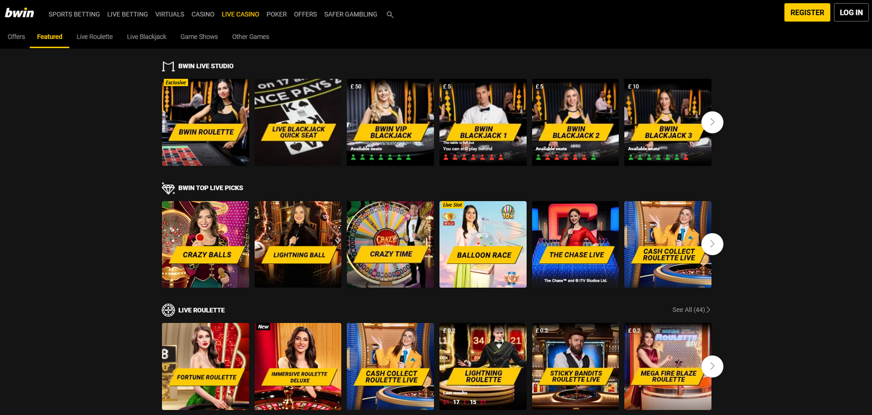 Bwin’s casino section boasts over 4,200 games, sourced from more than 100 providers, including industry leaders like NetEnt, Pragmatic Play, and Evolution Gaming. The library is dominated by slots, featuring popular titles such as Book of Dead and Age of the Gods, alongside progressive jackpot options with visible prize displays. Table games are well-represented, with multiple variants of blackjack, roulette, and baccarat available.
