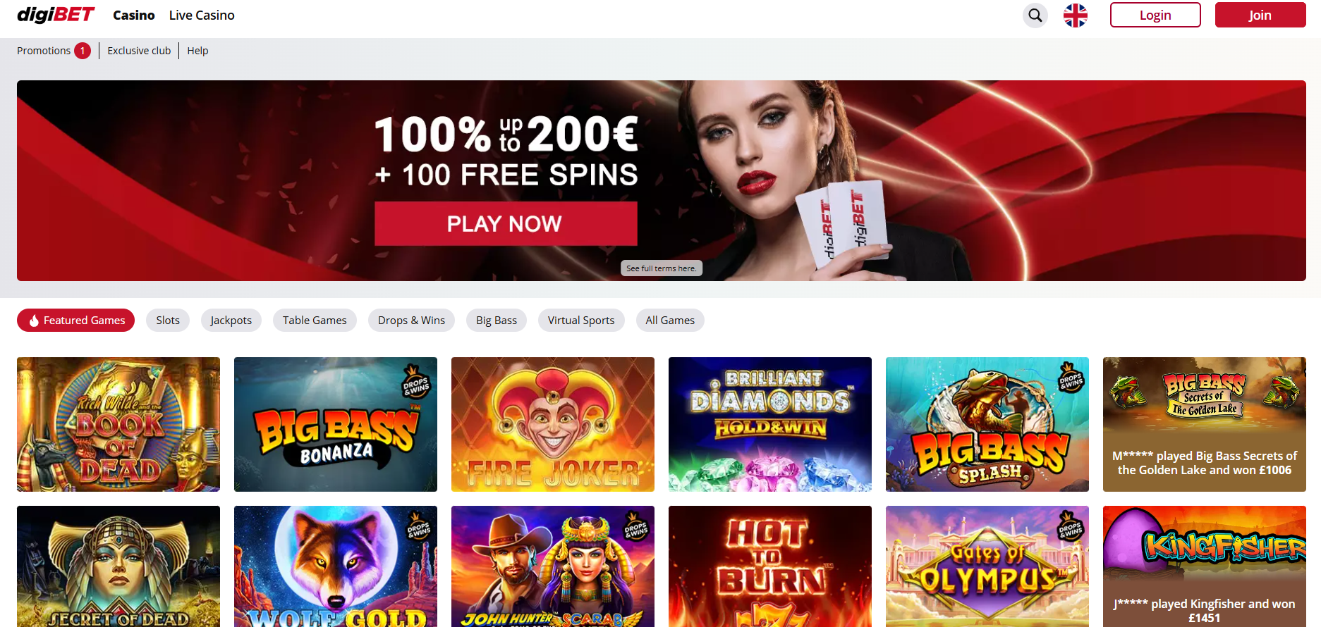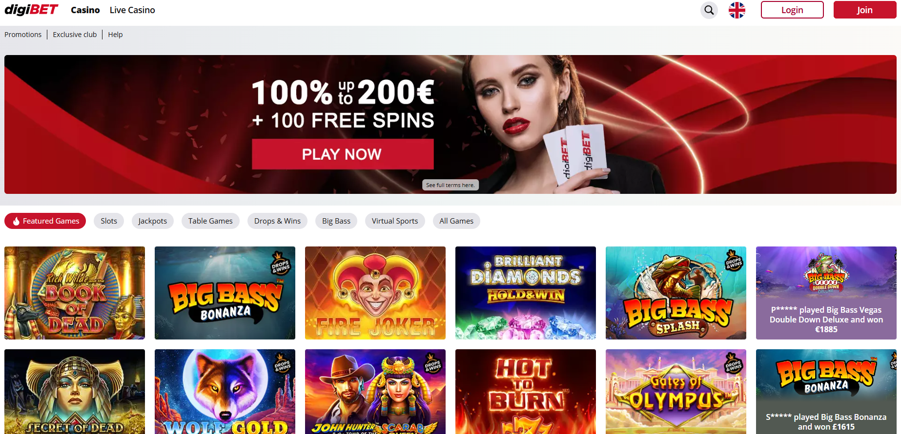 The casino arm of Digibet boasts an impressive library of over 200 games, powered by leading providers like NetEnt, Microgaming, Play’n GO, and Evolution Gaming. Slot enthusiasts can enjoy popular titles such as Starburst, Book of Dead, and Bonanza, alongside progressive jackpot options like Divine Fortune. Table game offerings include multiple variants of blackjack (e.g., Double Exposure), roulette (European and American), and baccarat, with video poker limited to Jacks or Better and Deuces Wild. The live casino stands out with 24/7 availability of blackjack, roulette, baccarat, and casino hold’em, hosted by professional dealers. The live experience is immersive, featuring HD streaming and interactive chat options, though the game variety is narrower compared to some competitors. Overall, the quality is high, delivering a polished and engaging gaming environment.