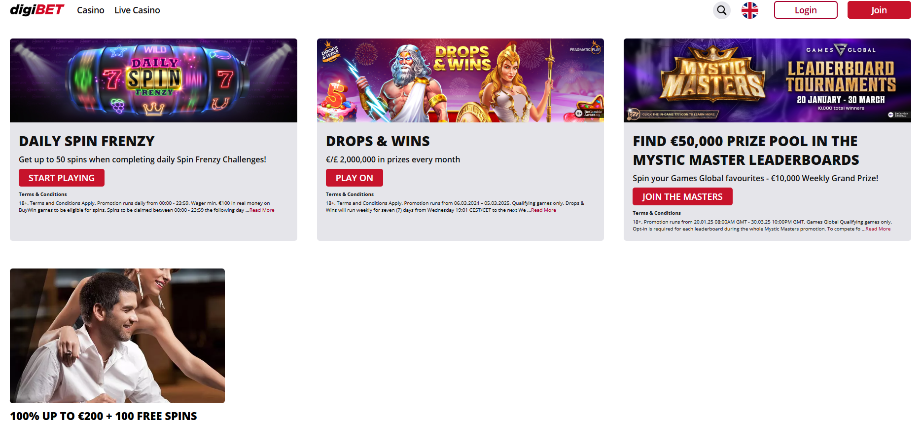 Digibet’s website features a clean, functional design with a layout that prioritizes ease of use. The homepage lists popular sports on the left, promotions in the center, and a winners’ ticker on the right, though the latter’s accuracy is questionable as a motivational tool rather than a factual record. Navigation is straightforward, with clear tabs for sports, casino, and live betting sections. The mobile version, accessible via browsers, mirrors the desktop experience, offering seamless transitions across devices without sacrificing functionality. While the absence of a dedicated app may disappoint some, the responsive design ensures a smooth experience on smartphones and tablets.