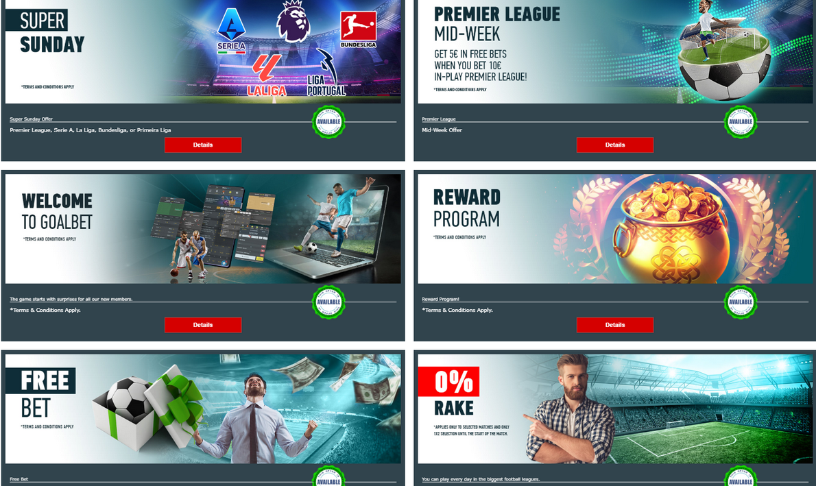 - Special Event Promotions: During high-profile sports events like the UEFA Champions League or Wimbledon, Goalbet often rolls out enhanced odds or risk-free bets, providing added value for sports bettors.