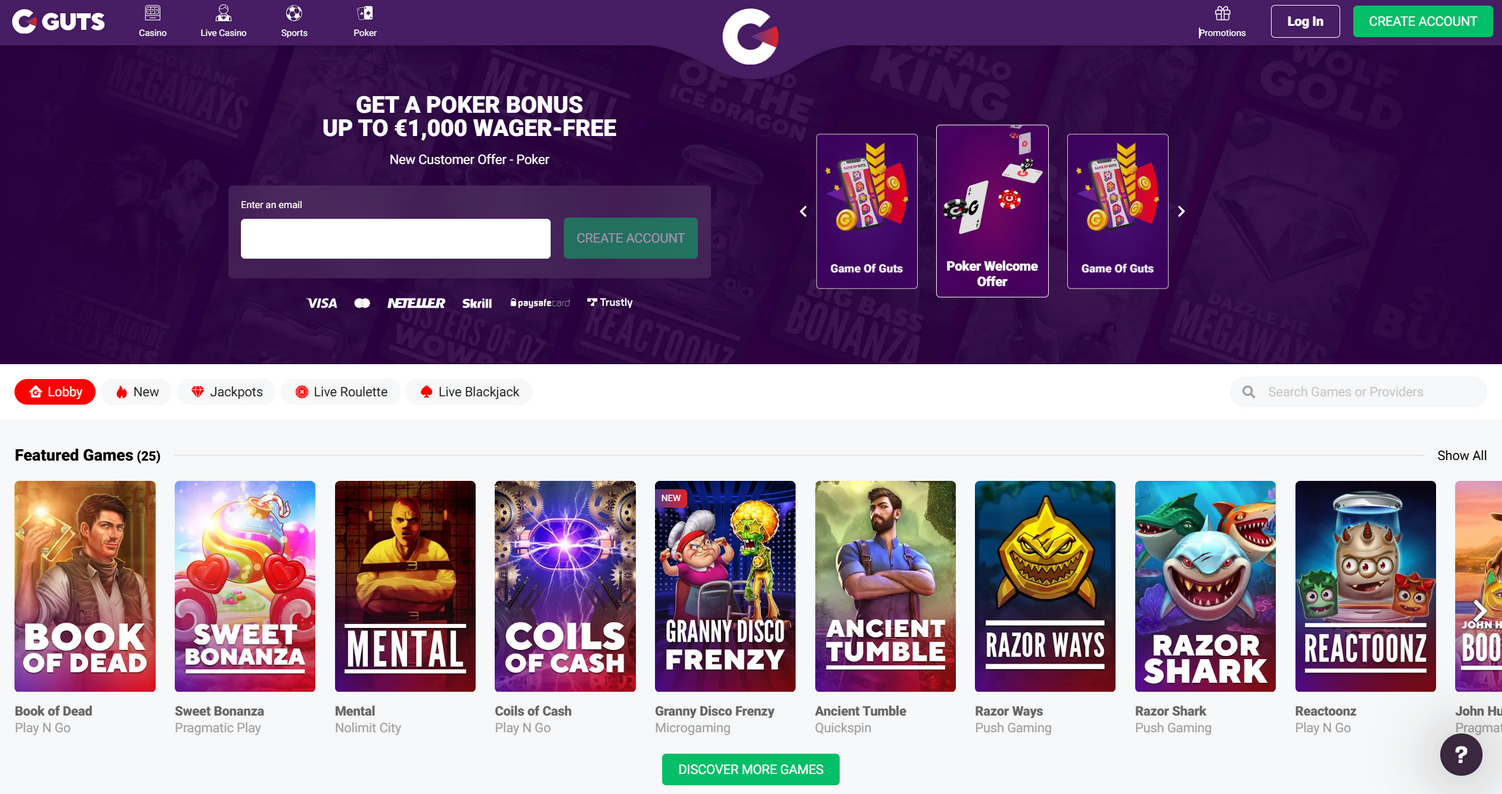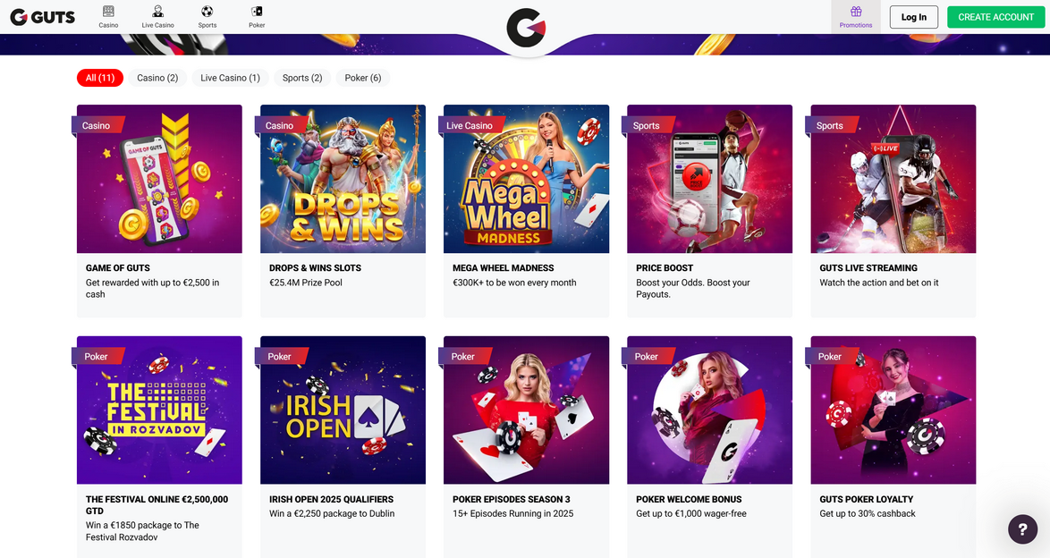 - Casino Game of the Week: Guts frequently runs promotions offering free spins or cashback on featured casino games, encouraging players to explore new titles.