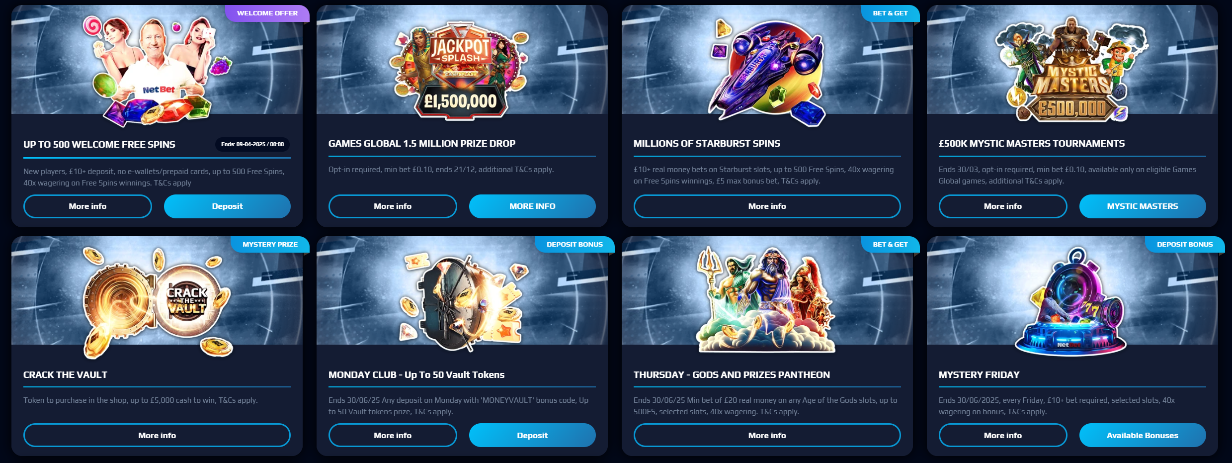 Beyond the welcome bonus, NetBet UK keeps the excitement alive with a range of ongoing promotions:
