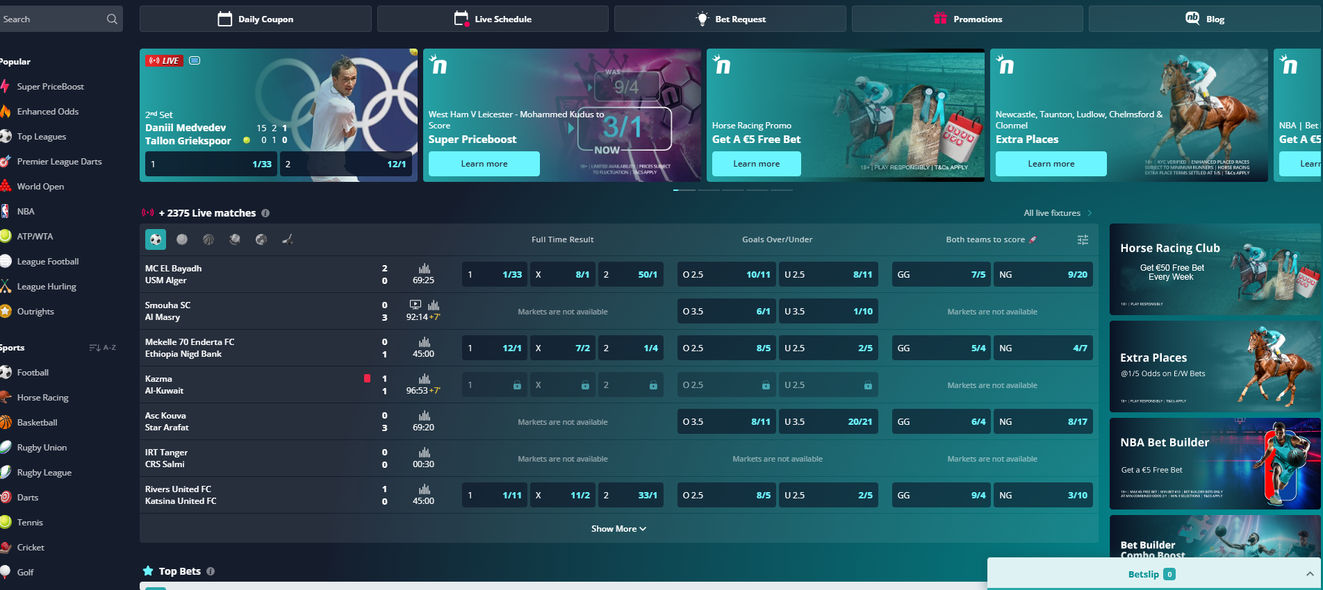 Novibet’s odds are highly competitive, averaging a 95% payout across major sports, with top football events occasionally hitting 100% payout (zero margin). Compared to industry peers, its margins (e.g., 107% overround on a typical football match) are respectable, offering value particularly on popular leagues like La Liga and the NBA. The platform shines with its breadth of markets—300+ for football, 60+ for tennis—catering to both casual bettors and those seeking niche opportunities, though Asian Handicaps are sparse.