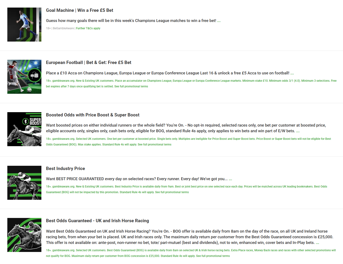 Through its Uniboost feature, Unibet provides three daily tokens to eligible UK customers, allowing you to boost odds on horse racing or football up to a £20 stake. This is perfect for turning a small punt into a bigger payout, especially on UK and Irish races.