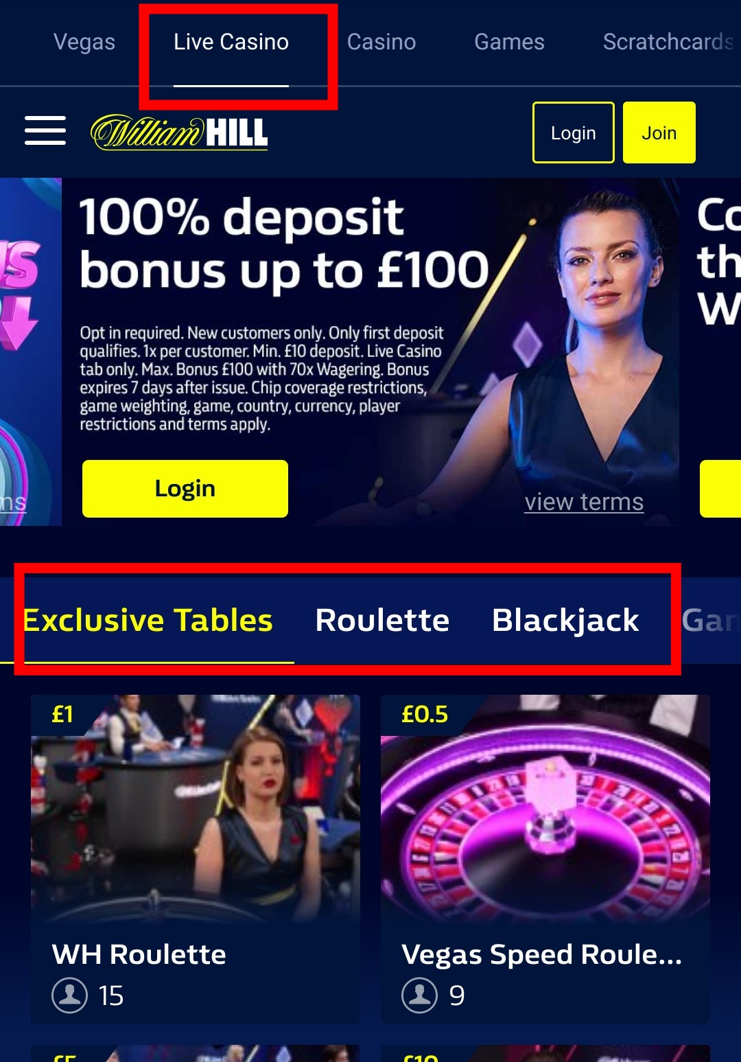 To make the most of the bonuses as a new player at William Hill Casino, it’s vital to head to both the casino section, and the live casino section as well.